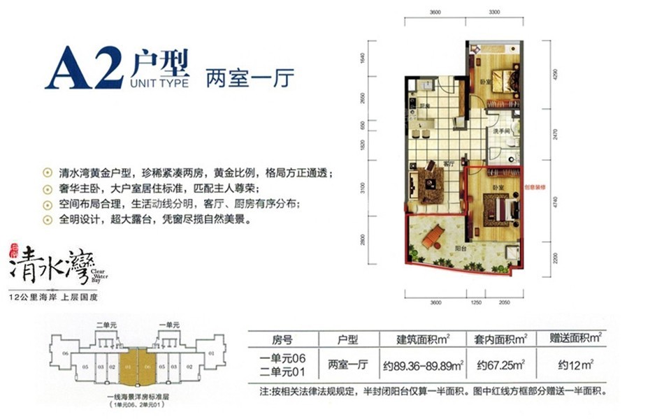 雅居乐清水湾海境新天项目9栋、15栋住宅房源在售,主力户型建筑面积为120㎡-212㎡,南北通透,客厅宽6米4,进深14米左右,整体均价31000元/㎡,总价480-1500万元/套,70年产权年限,物业费3.8元/㎡。云帆济海臻海墅项目四期1组团叠拼别墅在售,户型建筑面积为126㎡-171㎡,整体均价45000元/㎡。雅居乐清水湾云帆济海岁末大促,推出一口价房源,均为N1栋,建筑面积为75㎡-98㎡。其中N1栋505房,单价23551元/㎡,一口价总价178万元。其他房源具体优惠详情见下图,一房一价,具体时间以房源出售情况为准,售完即止。
